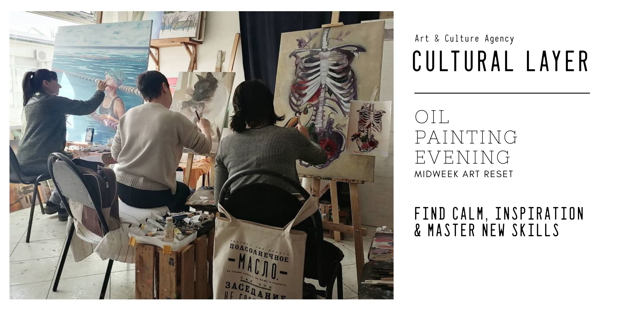 Cultural Layer creates art experiences that combine creativity, reflection, and cultural connection — from workshops and lectures to art retreats and corporate wellbeing events.EventPT2H2025-11-05Oil Painting Evening"Oil Painting Evening"Showtimes